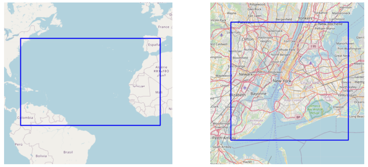 Latitude–Longitude Data: The dataset contains geographic coordinates for pick-up and drop-off locations, recorded in the fields Pickup_longitude, Pickup_latitude, Dropoff_longitude, and Dropoff_latitude. Descriptive statistical analysis was performed, and the coordinates were filtered according to the actual geographic range of New York City (latitude: 40.4774°–40.9176°, longitude: –74.2591° to –73.7004°) to ensure spatial accuracy and consistency. This procedure guarantees that all records fall within the city’s geographic boundaries, focusing the analysis on the study area (see Figure 1).