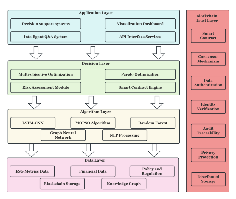 With the progressive advancement of the United Nations Sustainable Development Goals (SDGs), corporations encounter increasingly stringent Environmental, Social, and Governance (ESG) compliance mandates. Conventional supply chain finance paradigms exhibit significant limitations in effectively integrating ESG considerations for decision-making optimization. While blockchain and artificial intelligence technologies are widely recognized as pivotal technological pathways for enhancing ESG transparency and achieving intelligent supply chain decision-making, a systematic integration framework remains absent. This study constructs an intelligent green supply chain finance framework grounded in ESG reporting standards. The research employs a sample of 120 enterprises from the CSI 300 constituent stocks, incorporating their ESG reporting data spanning 2019-2023. Through the application of deep learning and multi-objective optimization algorithms, a four-tier intelligent decision-making architecture encompassing data, algorithmic, decision-making, and application layers has been designed. Regarding technical implementation, this research employs a Long Short-Term Memory-Convolutional Neural Network (LSTM-CNN) hybrid model for ESG risk assessment, develops a supply chain finance resource allocation algorithm based on multi-objective particle swarm optimization, and constructs an ensemble learning prediction model integrating Random Forest and Gradient Boosting Decision Trees. The framework incorporates blockchain distributed storage technology to ensure data immutability, while utilizing knowledge graph and graph neural network technologies to achieve supply chain relationship modeling. Empirical investigations validate the framework's effectiveness and practicality, providing theoretical foundations and practical guidance for the profound integration of green finance and supply chain management. This research holds substantial value in promoting corporate sustainable development and facilitating the green transformation of the economy.