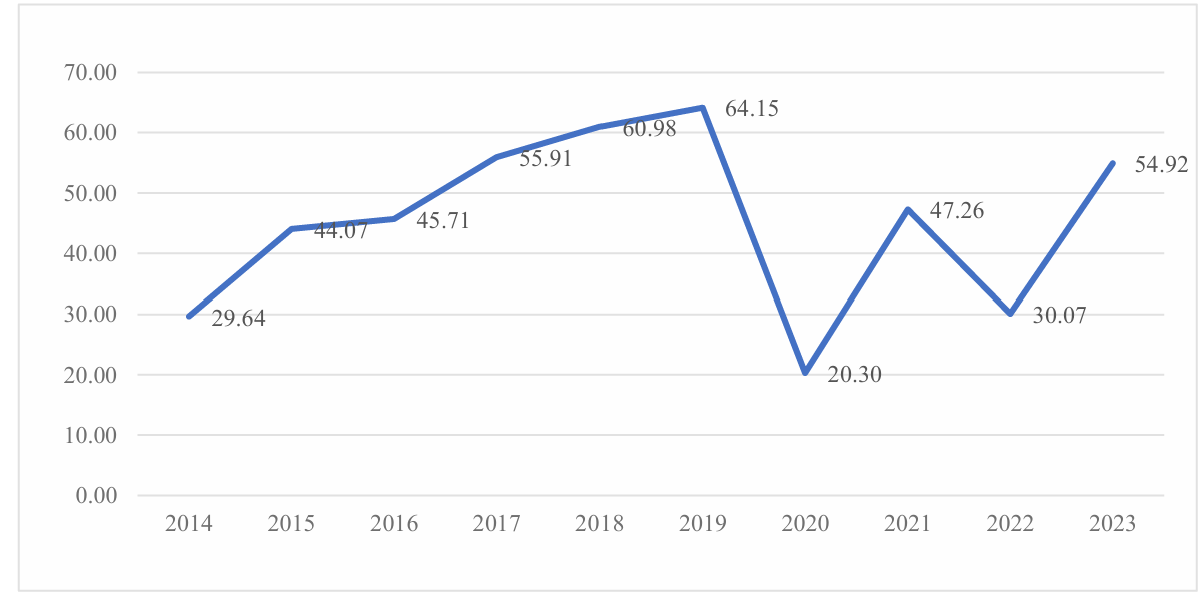 This paper mainly focuses on statistics from the year 2014 to 2023 and the first half year of 2014. As a result, in the future, different discoveries might appear with more information to analyze the trends and some more specific circumstances as a basis, such as natural disasters, financial fluctuations, and technological advancement. Due to the modification of situations, new development trends might be shown or strengthened.