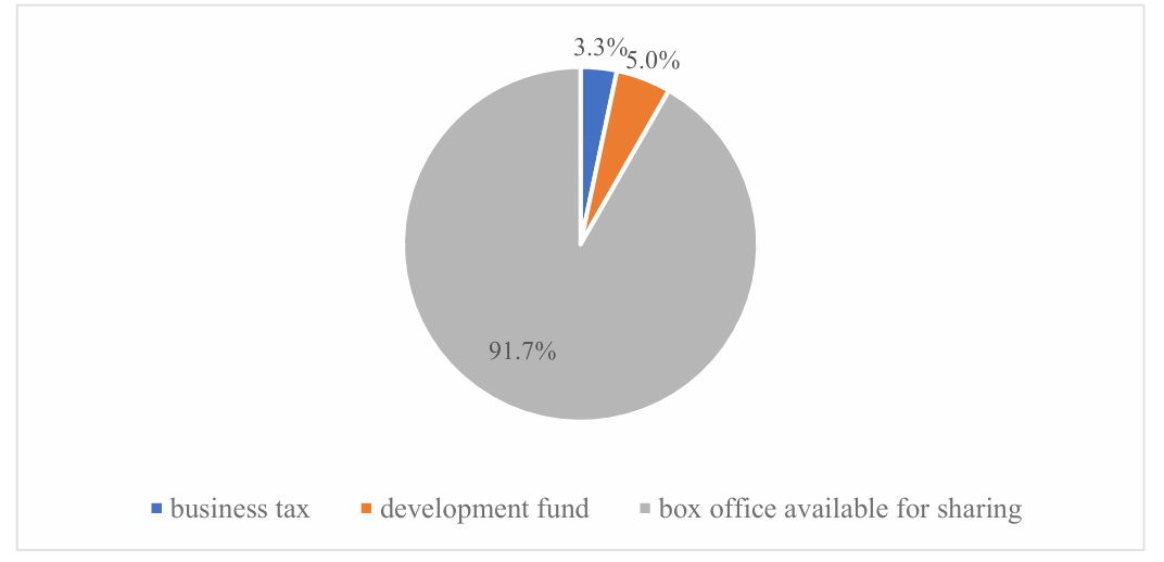 Just like the organized industry chain, the Chinese film and television industry also has a thorough income distribution process. Initially, the total box office revenue is required to pay 3.3 percent of business tax and a film industry development fund of 5 percent, which is an addition of 8.3 percent of the total box office revenue as summarized in Figure 2 [12]. Additionally, since the business tax directly goes to the government, the better the film and industry in China developments, the more tax the government obtains. As it is known to all, the government transfer payments, including unemployment benefits, retirement pensions, and poverty grants, are counted in the calculation of national savings in China. As a result, enhancing the development of the film and television industry in China would increase national savings in China by enriching the government and providing more transfer payments for citizens. The government could supervise the taxing process to ensure every tax is strictly paid to maintain the amount of national income. Moreover, a percentage of the development fund is paid to the "Special Fund Office", which will later be put into the national treasury for future utilization of Chinese film and industry development.