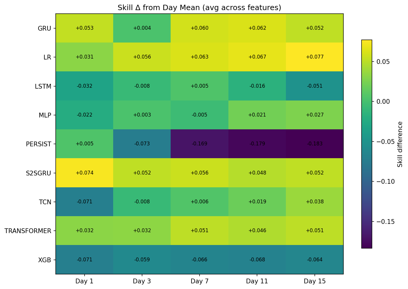 This study focuses on a comparative study of machine learning methods on offline weather forecasting with short lookback windows and limited computational resources. Using 90 days of single-station GSOD inputs, models predict 15-day horizons for temperature, precipitation, wind speed, and visibility. Evaluation with Nash–Sutcliffe efficiency, RMSE, and inference time shows that Linear Regression is a surprisingly strong and stable baseline, excelling in wind speed and remaining competitive across variables. Transformer models perform best for temperature by capturing long-range dependencies, while sequence-to-sequence GRUs outperform others on precipitation and visibility. In contrast, XGBoost and persistence baselines consistently underperform in this constrained setup. In inference time, LR outperform all other methods due to its simplicity. The results indicate that simple linear models can excel in this scenario compare to deep learning approaches, while specialized neural architectures provide targeted gains, suggesting a combination of models could be the most effective for practical low-resource forecasting.